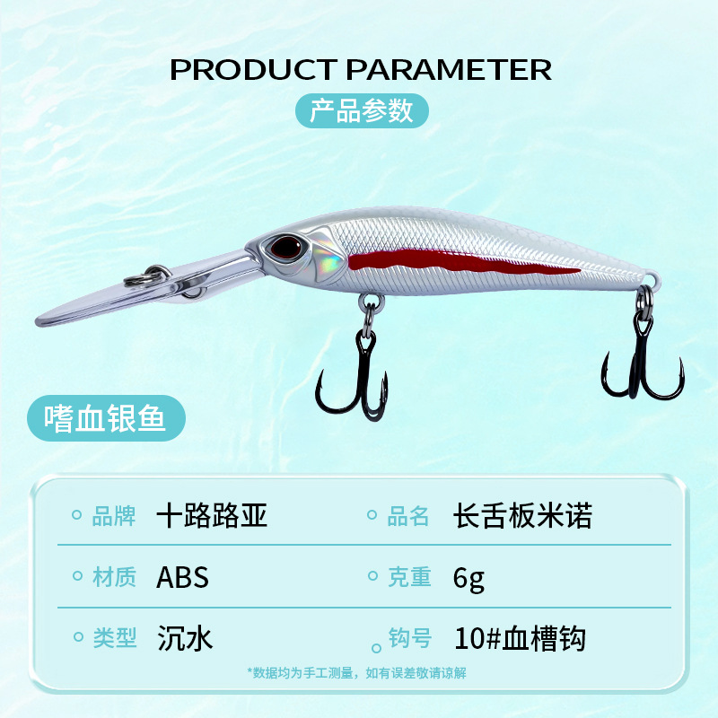 Minoalua bait 6g submerged long tongue plate deep diving simulation simulated bait plastic hard bait fake bait fishing gear long-distance throwing bait